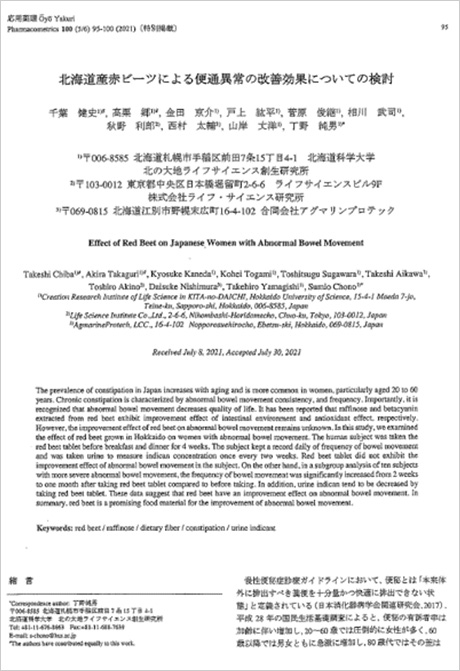 北海道産赤ビーツによる便通異常の改善効果についての検討